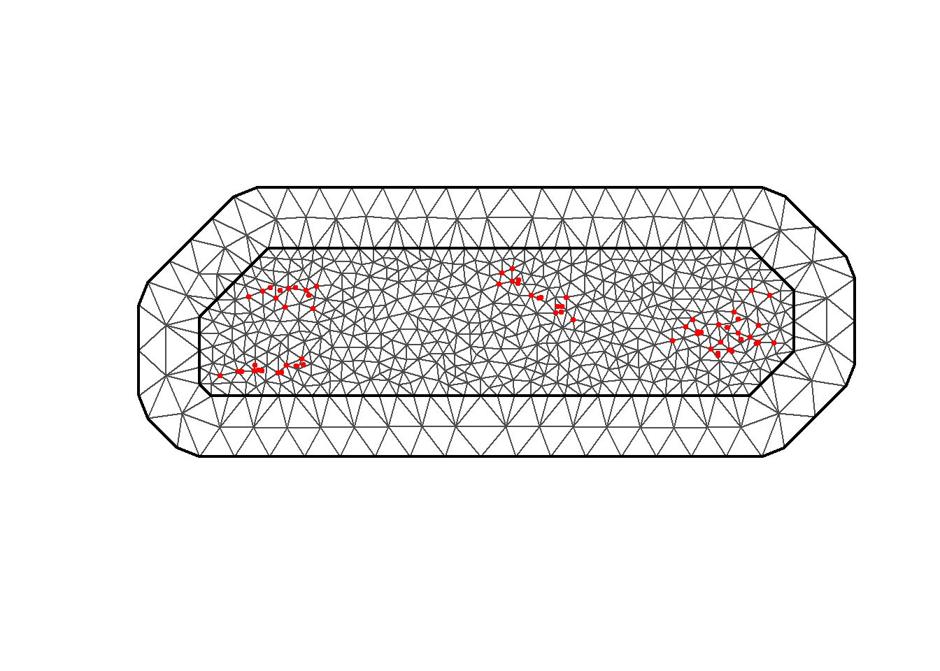 In a “Latent Gaussian Process”, INLA creates a “sparse” approximation of the Gaussian Process covariance matrix. It approximates this using a “matern covariance function” that has the added benefit of having a “range” (distance) and “smoothness” (standard deviation) function which can control the correlation (or even be modeled with covariates). To transform between the continuous Gaussian Process, INLA uses Spatial Differential Equations (SPDE), using a “mesh” over the entire study site to turn this into a discrete (point based) field (called a Gaussian Markov Random Field).
