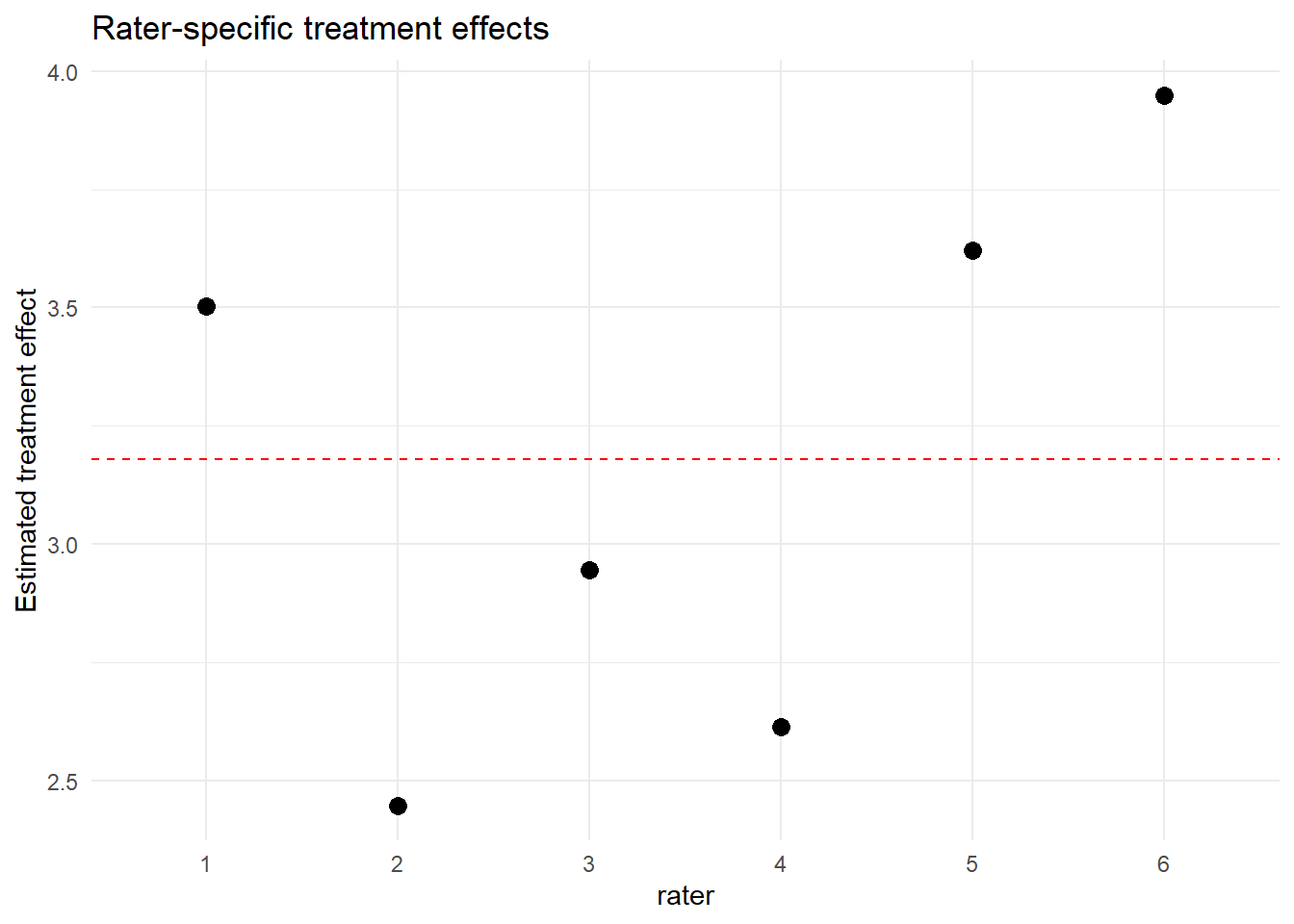 labs(y = "Estimated treatment effect", title = "Rater-specific treatment effects") +