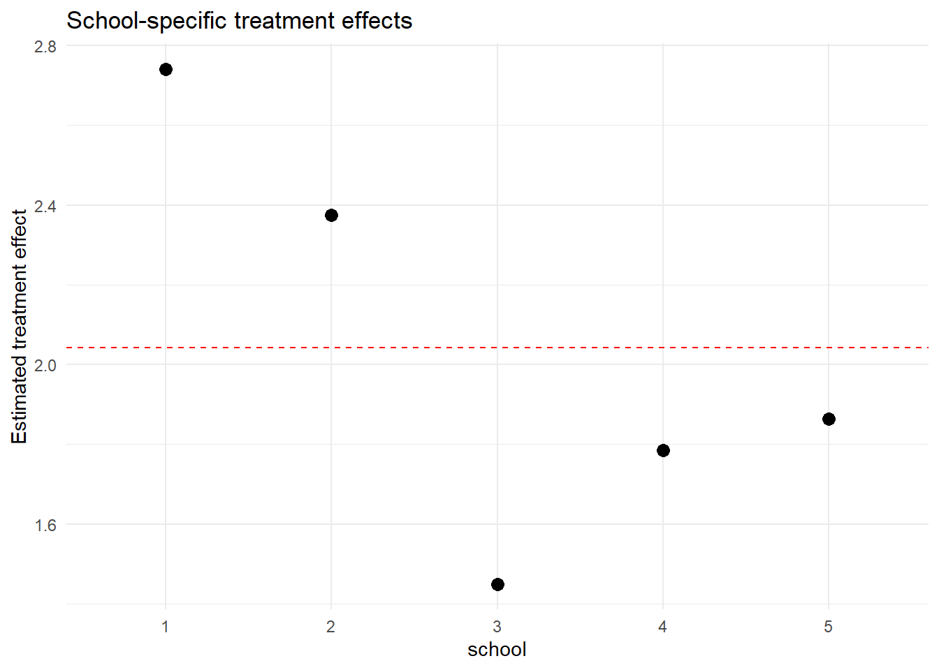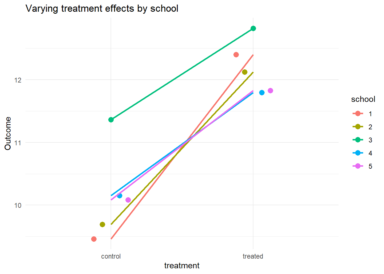 m_nested <- lmer(y ~ treatment + (1 + treatment | school), data = df_nested)